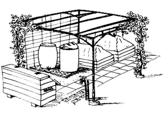 Anstelle von Hecken können auch Kletterpflanzen an einem Rankgerüst hochgezogen